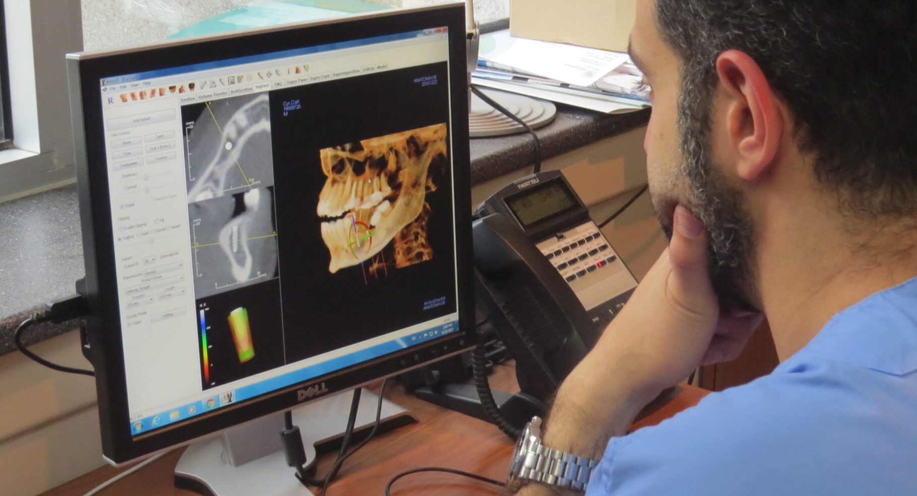 Digital technology plays a central role in modern dental implant treatment. In Montreal, CBCT (cone beam computed tomography) imaging allows precise evaluation of bone volume, adjacent tooth roots, and available space for the implant.