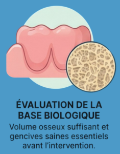 - L’évaluation préopératoire (os, gencives, santé générale) est cruciale
